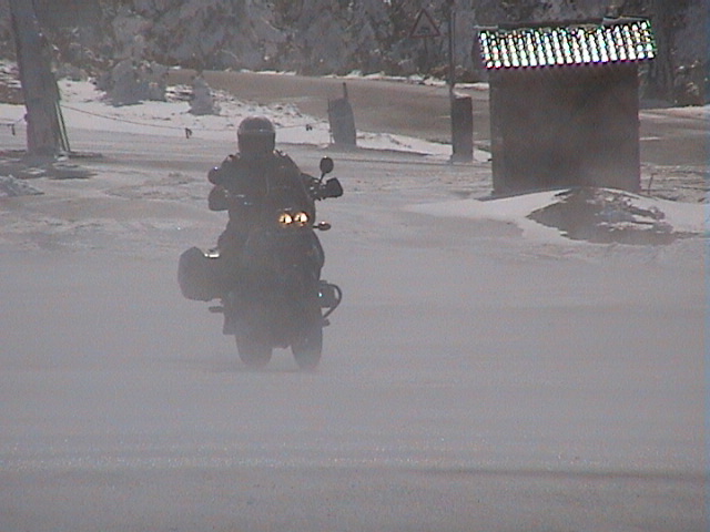 Abfahrt Richtung Hamburg mit Auto und Motorradanhänger wie immer im Schnee.